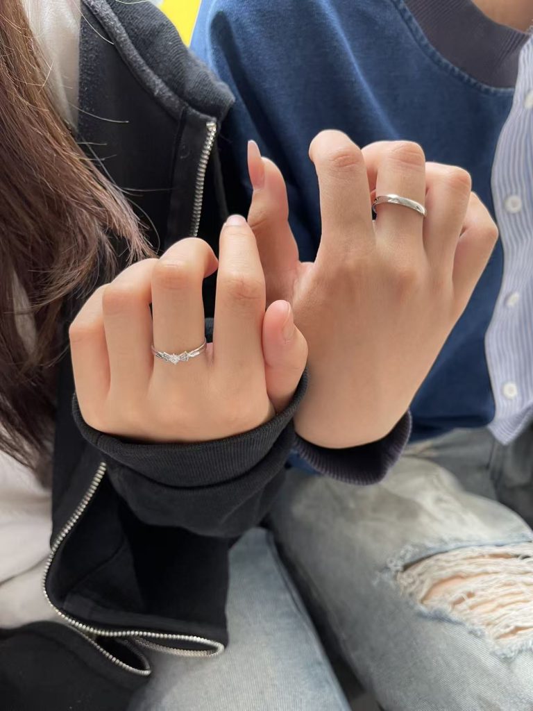 凌晨两点的厨房,他正踮脚给泡好的牛奶降温,转身时撞进她带着困意的目光;周末的公园长椅上,她把剥好的橘子瓣递到他嘴边,风卷起落叶落在两人交叠的手背上 —— 爱情里最动人的从不是轰轰烈烈的誓言,而是藏在三餐四季里的 “我愿意陪你”,就像钟久久结与心愿情侣对戒,用细腻的设计,把每一份 “想和你走到老” 的心意,都酿成了触手可及的温柔。