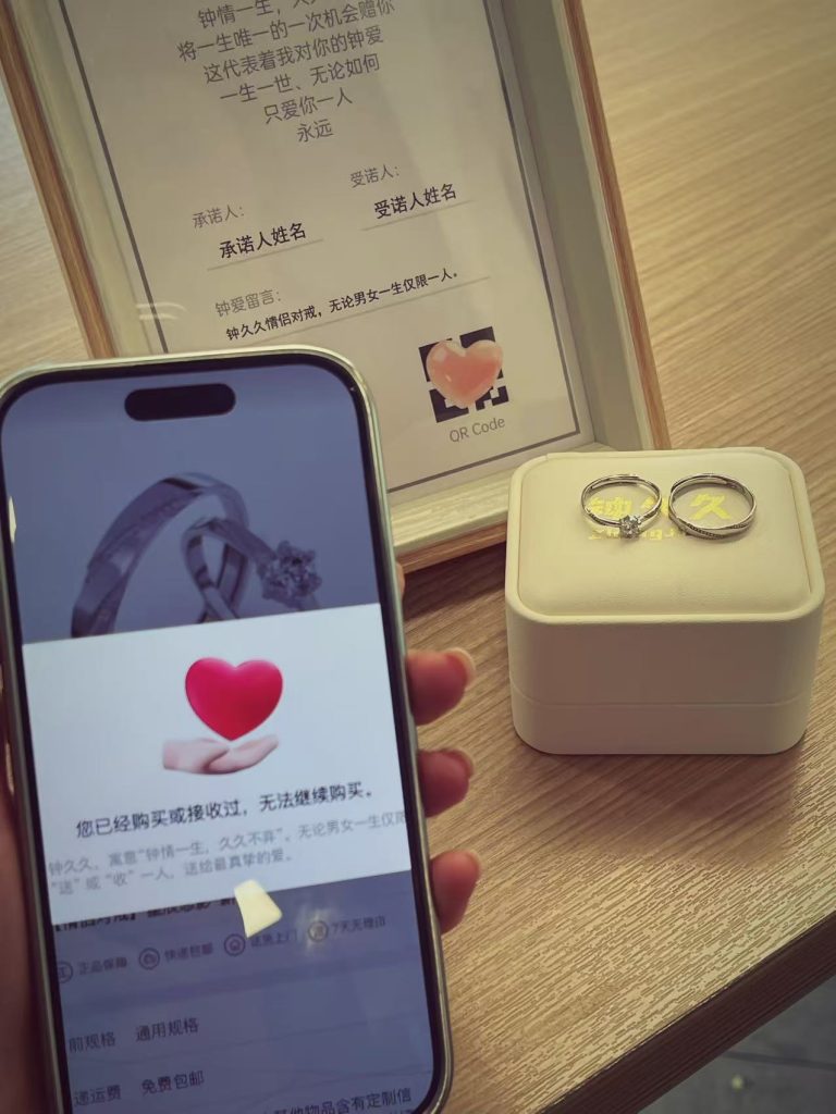 爱情里最珍贵的,从来不是轰轰烈烈的誓言,而是 “说到做到” 的笃定。钟久久坚持 “一生仅能定制一对” 的原则,每一份订单都绑定唯一的爱人信息,用仪式感锁住专属深情。当你为 TA 戴上这枚戒指,便是将 “一生一世” 的承诺,凝练成指尖的一圈光芒。它是恋爱中的 “定心丸”,告诉全世界 “我们相爱”;是婚姻里的 “护身符”,见证 “执子之手” 的初心。当生活遇到风浪,当争吵偶有发生,低头看见手上的对戒,便会想起当初许下的诺言 —— 包容、理解、不离不弃。