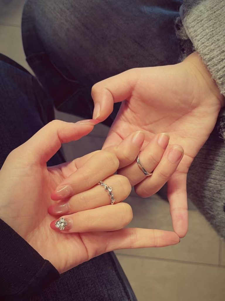 除了直击人心的定制规则,钟久久对戒的设计更是把浪漫藏进了每一处细节。如果你偏爱细腻的心动共鸣,“心跳时刻”对戒绝对是首选。戒指壁上的夜光心形元素,就像彼此紧贴的心跳,白日里低调相伴,黑夜里散发柔和微光,时刻提醒着彼此:每一次相见的心动,都值得被铭记。若是向往永恒的羁绊,那枚“莫比乌斯”对戒便能精准契合你的心意。流畅的莫比乌斯环造型没有起点与终点,象征着爱情的无尽延续,S925纯银的细腻质感,让这份永恒更添一份温润,经得起岁月的打磨。