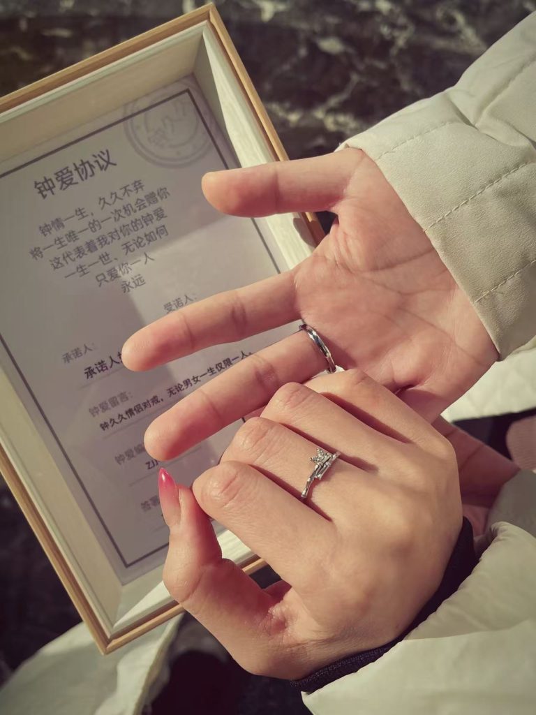 真正的爱情信物,从来都不止是一件首饰,而是一份可触摸、可珍藏的契约。定制完成后,钟久久会附赠一份由双方身份信息加密生成的真爱协议与专属真爱编码,搭配定制相框,将彼时的心动与承诺永久定格。这串编码、这份协议,或许只是简单的凭证,却承载着“往后余生,皆是你”的重量,在每个纪念日翻阅时,都能重温当初那份义无反顾的坚定。就像有情侣所说:“戴上钟久久,不是为了炫耀,而是每当抬手看见指尖的戒指,就知道自己被人用一生的诚意爱着。”​