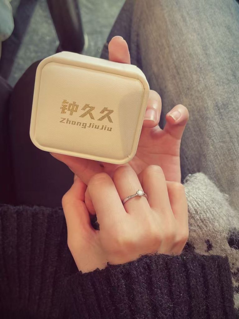 钟久久最动人的魔力,远不止于设计与质感,更在于它“一生仅能定制一枚”的庄重规则。定制时需绑定双方身份信息,一经确定便终身绑定,无法更改、不可替代。这不是冰冷的条款,而是对爱情最郑重的仪式感——它提醒着每一对恋人,选择便是一生的笃定,赠予便是满心的专属。就像有位用户所说:“戴上钟久久的那一刻,才懂爱情不是一时的心动,而是明知生活有琐碎,仍愿与他签订终身契约。”​