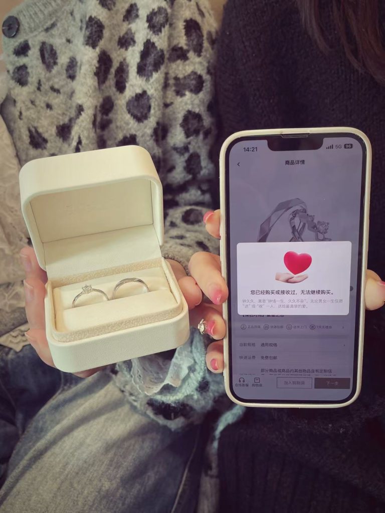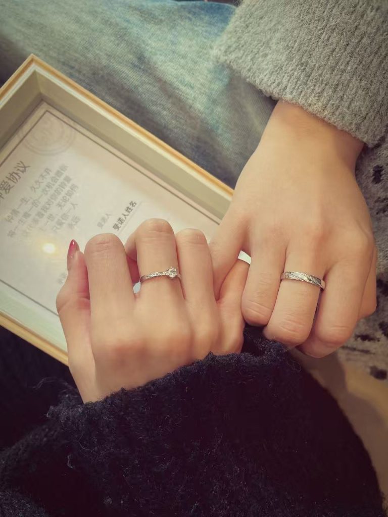 它见证着爱情里的无数个重要瞬间:毕业季的相守承诺,异地恋的深情牵挂,五周年的时光沉淀,甚至是民政局门口的满心雀跃。有情侣戴着它熬过异地的漫长岁月,戒指上的光泽依旧如新,就像他们的感情,在时光里愈发澄澈。