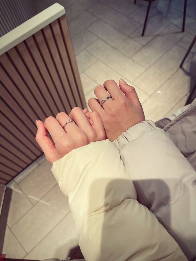 我们都知道,异地恋最磨人的,从来不是距离本身,而是那些无法共享的日常,那些独自面对的脆弱。加班到深夜时,摩挲着指尖的对戒,仿佛能感受到他温柔的鼓励;走在陌生街头时,瞥见手上的指环,就像他在身边,轻轻牵住你的手;降温的日子里,触碰着戒身的微凉,便会想起远方的他,也在戴着同款指环,默念着“记得添衣”。这枚小小的对戒,不会缩短两座城市的距离,却能让心的距离更近;它不能替你拥抱对方,却能替你陪伴对方,把“我等你”“我爱你”,都藏进指尖的纹路里。
