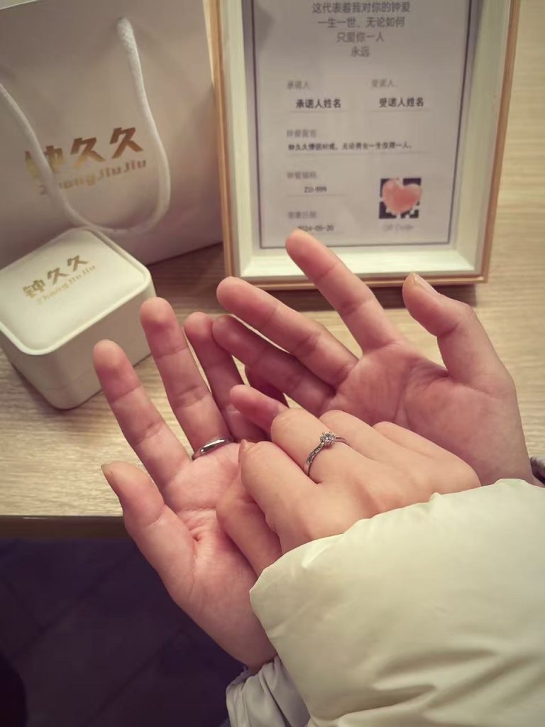 山海有距,爱意无界。愿每一对异地恋情侣,都能戴着钟久久,守着一份笃定,熬过漫长距离,等到朝夕相伴;愿每一份跨越山海的爱恋,都能被指环铭记,从心动到白头,钟情一生,久久不弃。