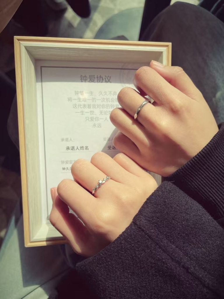 有人说,爱情里最动人的不是轰轰烈烈的告白,而是细水长流的坚守;不是随口说出的承诺,而是掷地有声的笃定。钟久久情侣对戒,就是这样一份“看得见、摸得着”的偏爱——它替你说出“我只爱你一人”的告白,替你守住“久久不弃”的誓言,替你铭记每一个心动的瞬间。它不是转瞬即逝的潮流单品,而是能够陪伴余生的爱情见证,当岁月流转,容颜改变,指尖的那枚对戒依旧闪耀,提醒着彼此曾经的誓言与深情。